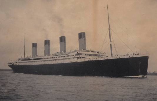 A fotografia em preto e branco, montada num quadro de carvalho esmaltado, foi tirada pouco antes do Titanic partir para a sua viagem inaugural de Southampton a Nova York, em Abril de 1912.