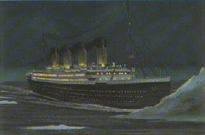 O navio inafundável, o palácio flutuante, foi constuído para ser o túmulo para os milionários que se opunham à criação do banco central norte-americano na mão particular dos jesuítas. Curiosamente no dia 14 de Abril, a mesma data do assassinato do presidente Abraham Lincoln, o Titanic bate num iceberg e afunda no dia 15 de Abril, o mesmo dia da morte de Abraham Lincoln. Portanto, em Abril de 1912 toda oposição relevante à criação do FED foi eliminada. Em Dezembro de 1913, bem próximo do Natal, com o congresso praticamente em recessão, o Sistema da Reserva Federal foi aprovado pelo congresso dos EUA. Oito meses depois, já em 1914, os jesuítas já tinham acumulado fundos suficientes, através do FED, para começar a Primeira Guerra Mundial.